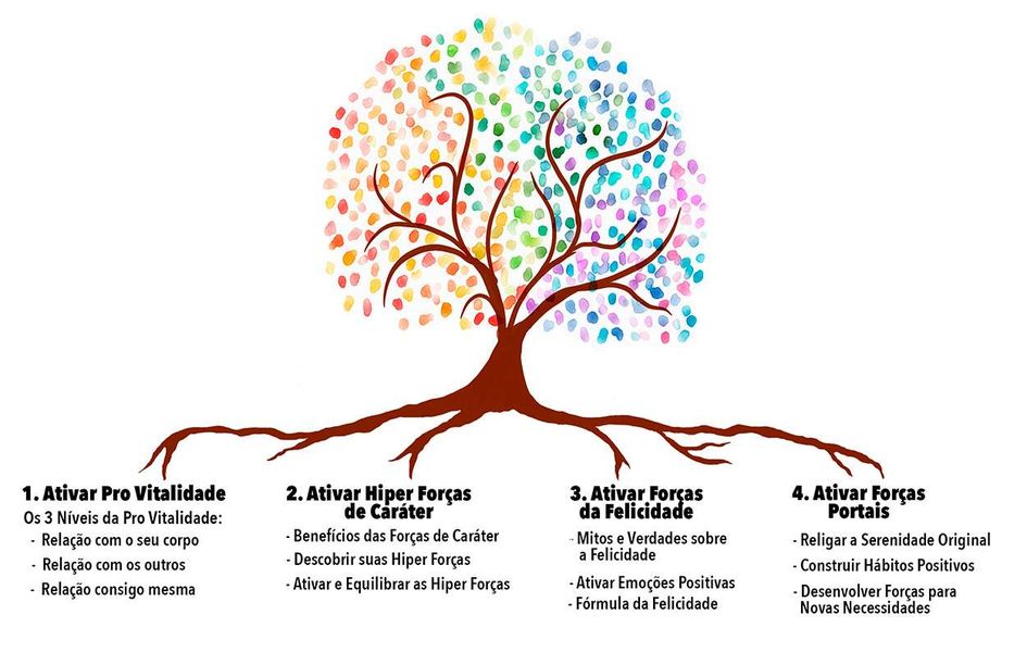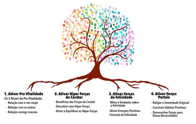 O curso é todo focado para você ter relacionamentos positivos através das 24 Forças de Caráter.